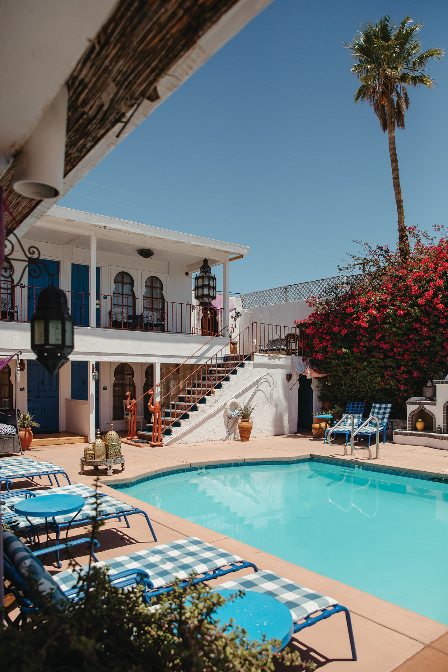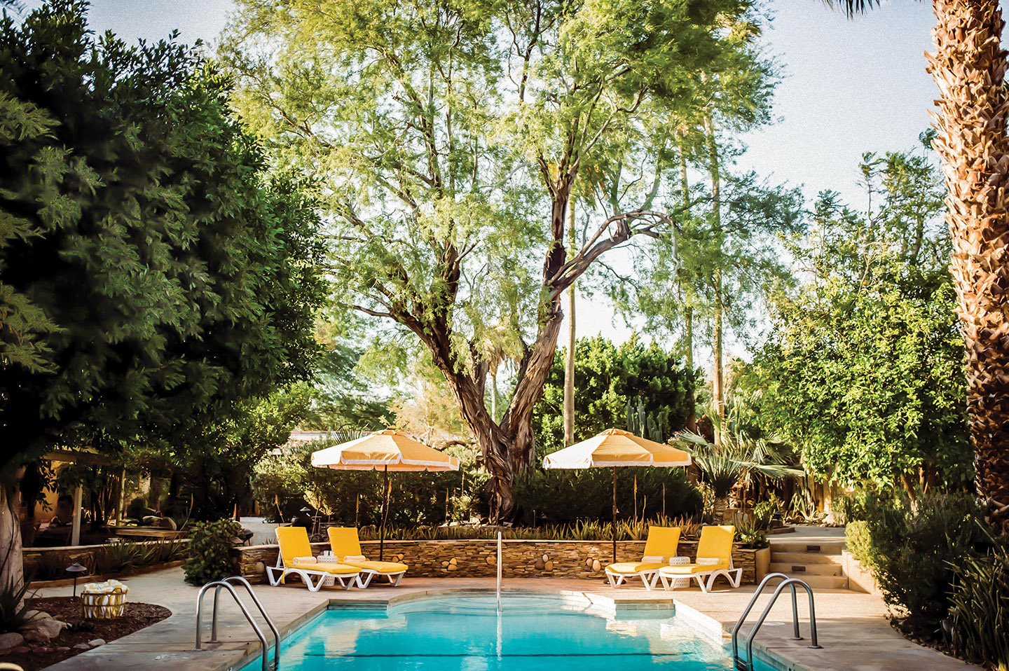 Behind vine-draped walls in the Miracle Hill district, The Good House cultivates the mood of a private home, complete with two pools filled from the town’s famed mineral springs. The property is compact — just seven rooms — yet its atmosphere feels expansive, thanks to shaded gardens, firelight, and a day spa that extends the sense of retreat. It’s the kind of place you can retreat to for solitude, without giving up modern comforts. Rooms are equipped with streaming TV services, and though juice cleanses are available, pizza and cocktails are too. In partnership with Kind Traveler, The Good House donates $2 per night of every stay to the LGBTQ+ Community Center of the Desert.