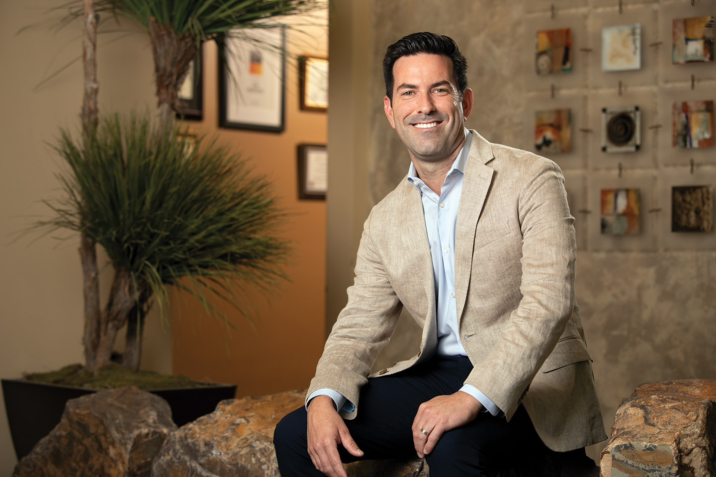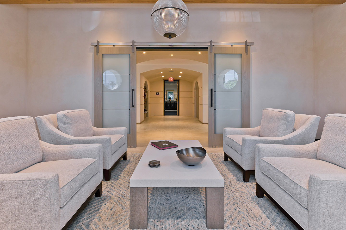 Discover an exceptional enclave nestled within the heart of Rancho Mirage. This 4,806-square-foot home with an elegant combination of dark timber beams, natural stone, and smooth stucco, welcomes you into a world of sophistication. At 4 Via Perugia, beyond the inner courtyard, enter through reeded glass doors into a grand open-concept design featuring 15-foot cathedral ceilings, a modern fireplace, and abundant natural light.