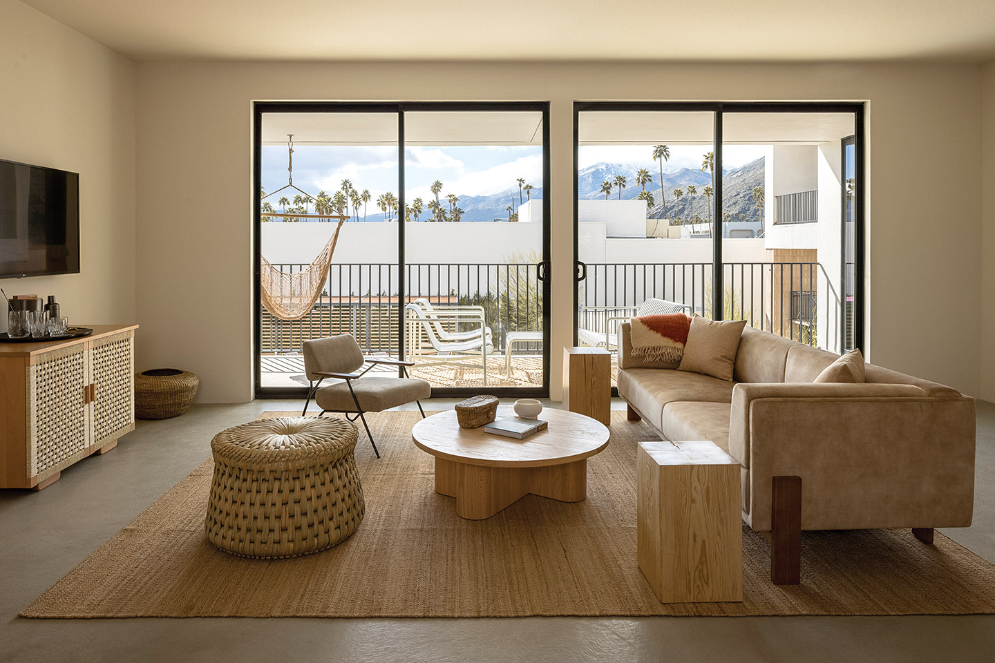 The boutique property offers five room types, from king-bed studios to four-bedroom, three-bathroom suites. Each come with full kitchens, stocked pantries, and spacious living areas — all perfectly positioned in downtown Palm Springs, just steps from the city’s best dining, shopping, and entertainment.