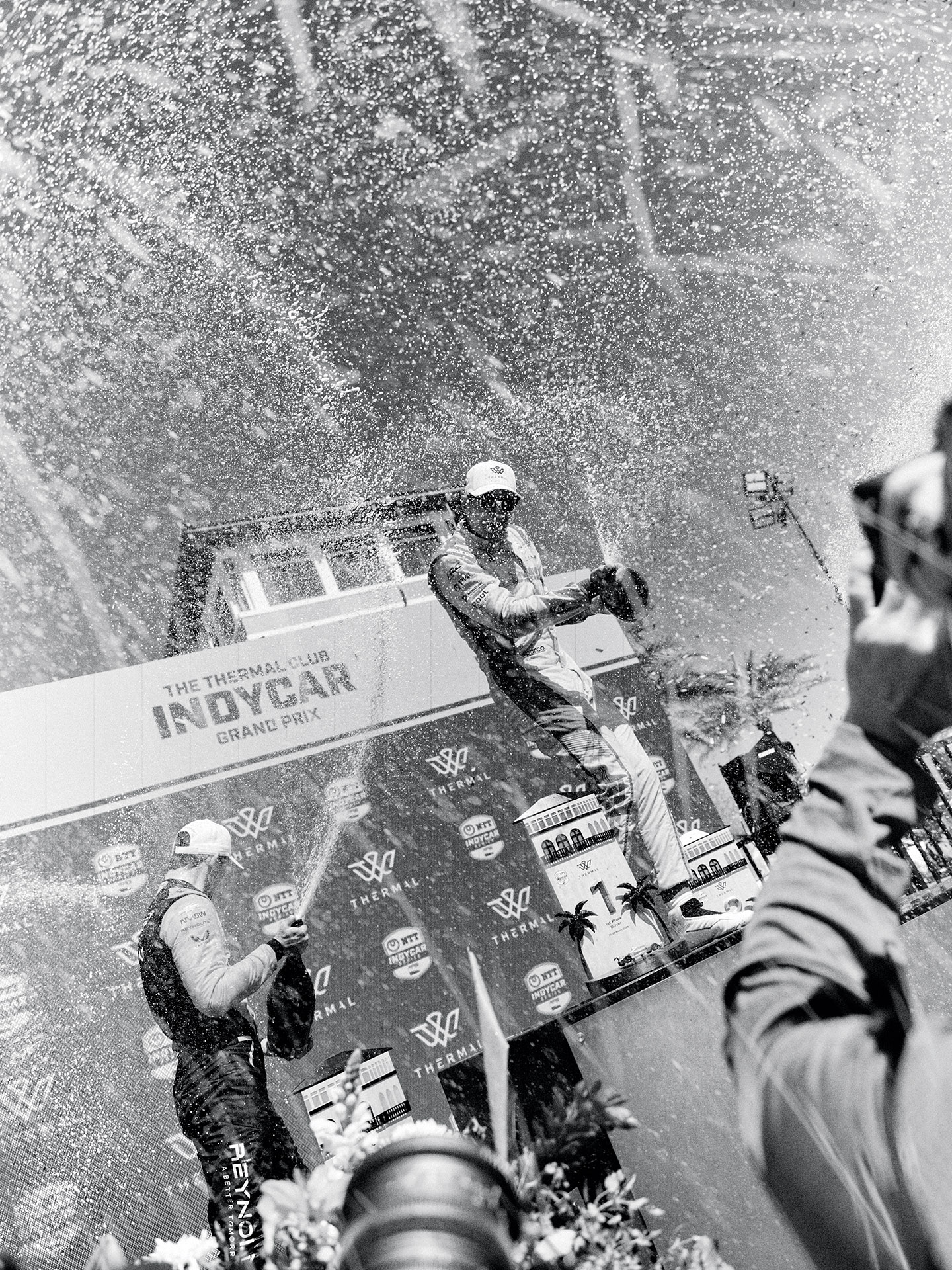 Palou lets the Champagne fly.