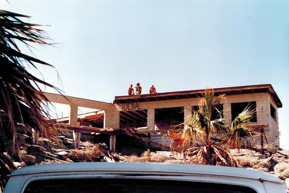What remained of the Desert Garden Ranch suffered years of disrepair under the desert sun until Elguera and other skateboarders arrived in 1982. By this point, the dirt road leading to the resort had eroded, leaving the resort stranded deep in a sea of sand. The skeletal remains of the stucco clubhouse stood next to a swimming pool filled with years of refuse. Locals had used it as a trash pit.