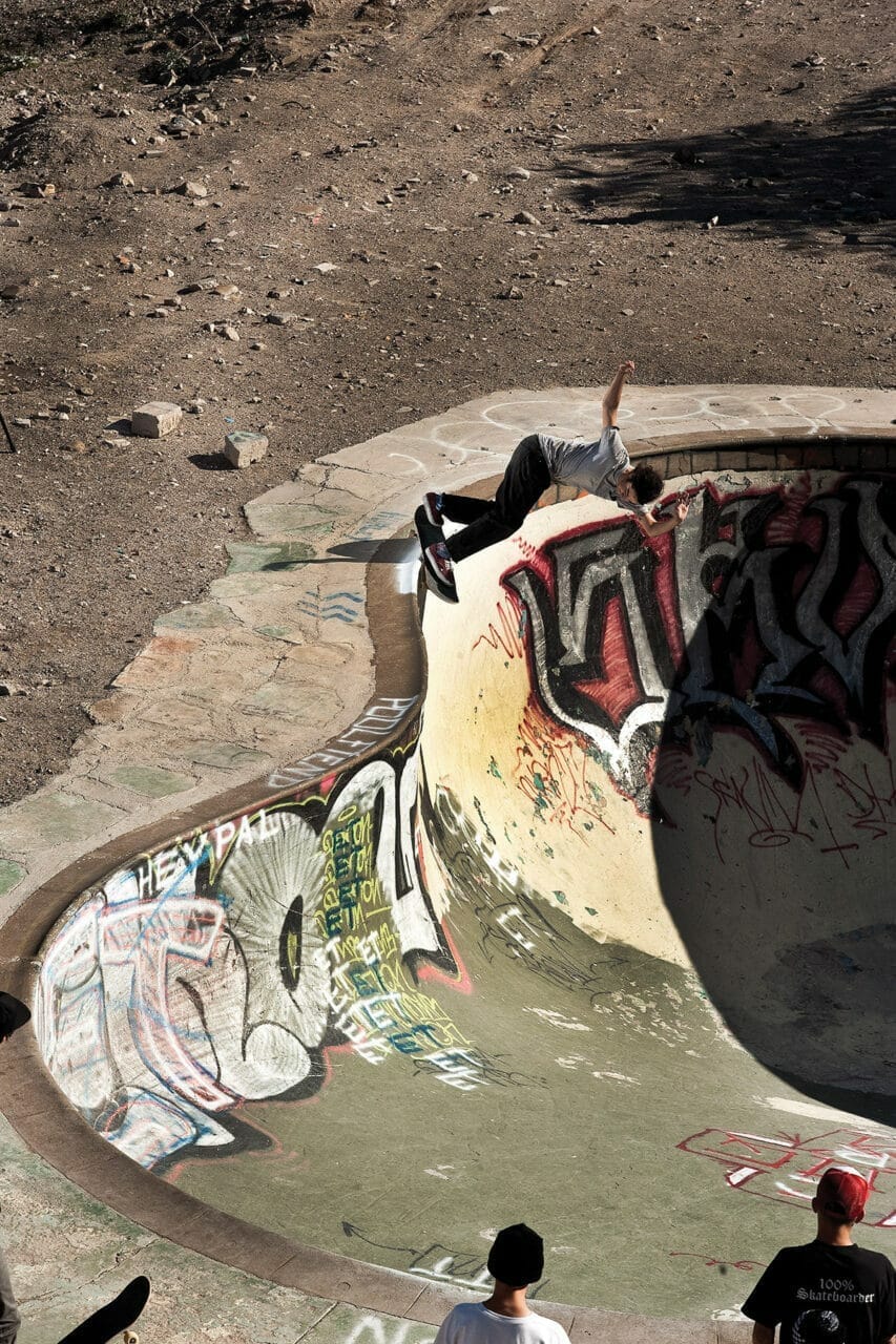 The victim survived, but the Nude Bowl did not. Skateboarders returned to find the pool filled with dirt, effectively putting an end to 17 years of epic rides. Who buried the Nude Bowl remains a point of debate, with some claiming the police and others pointing to nearby residents, frustrated by the all-night parties and lawlessness.