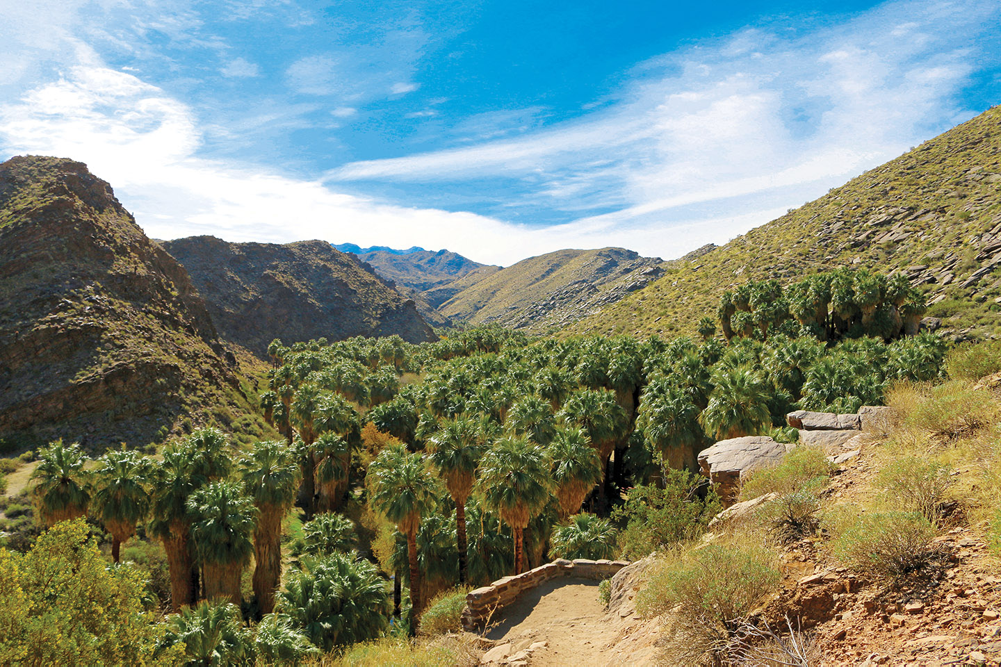 The Mission Creek Preserve Trail follows the creek past old stone structures, now used as picnic spots, and into a natural oasis. The easy 1.6-mile route gains only about 325 feet. Along the way, the landscape shifts into a surprisingly lush corridor, where willows and cottonwoods shelter wildlife.