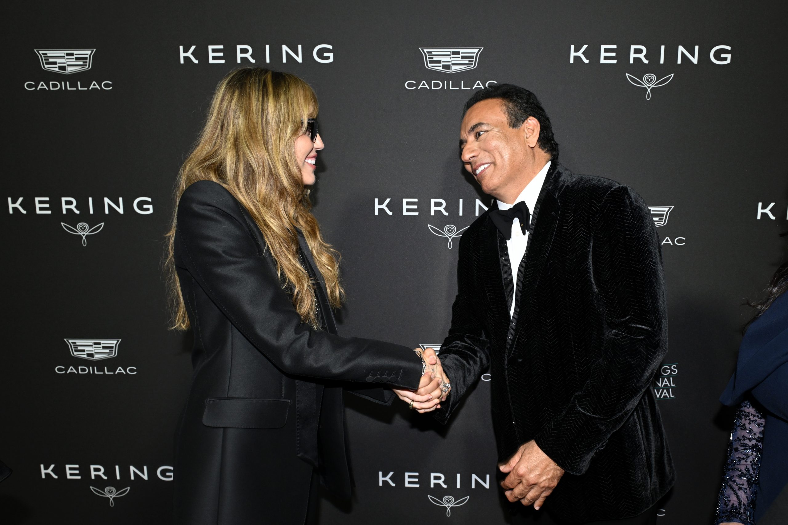 Miley Cyrus shakes hands with festival chairman Nachhattar Singh Chandi.