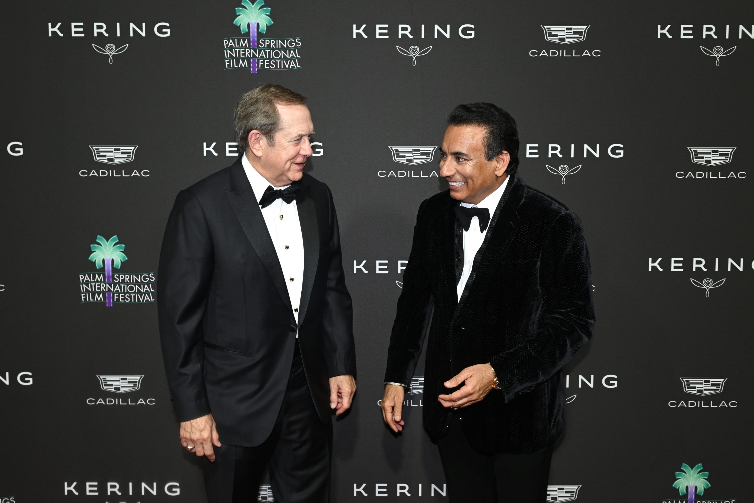 Sponsor Jordan Schnitzer and chairman Chandi exchange a laugh on the red carpet.