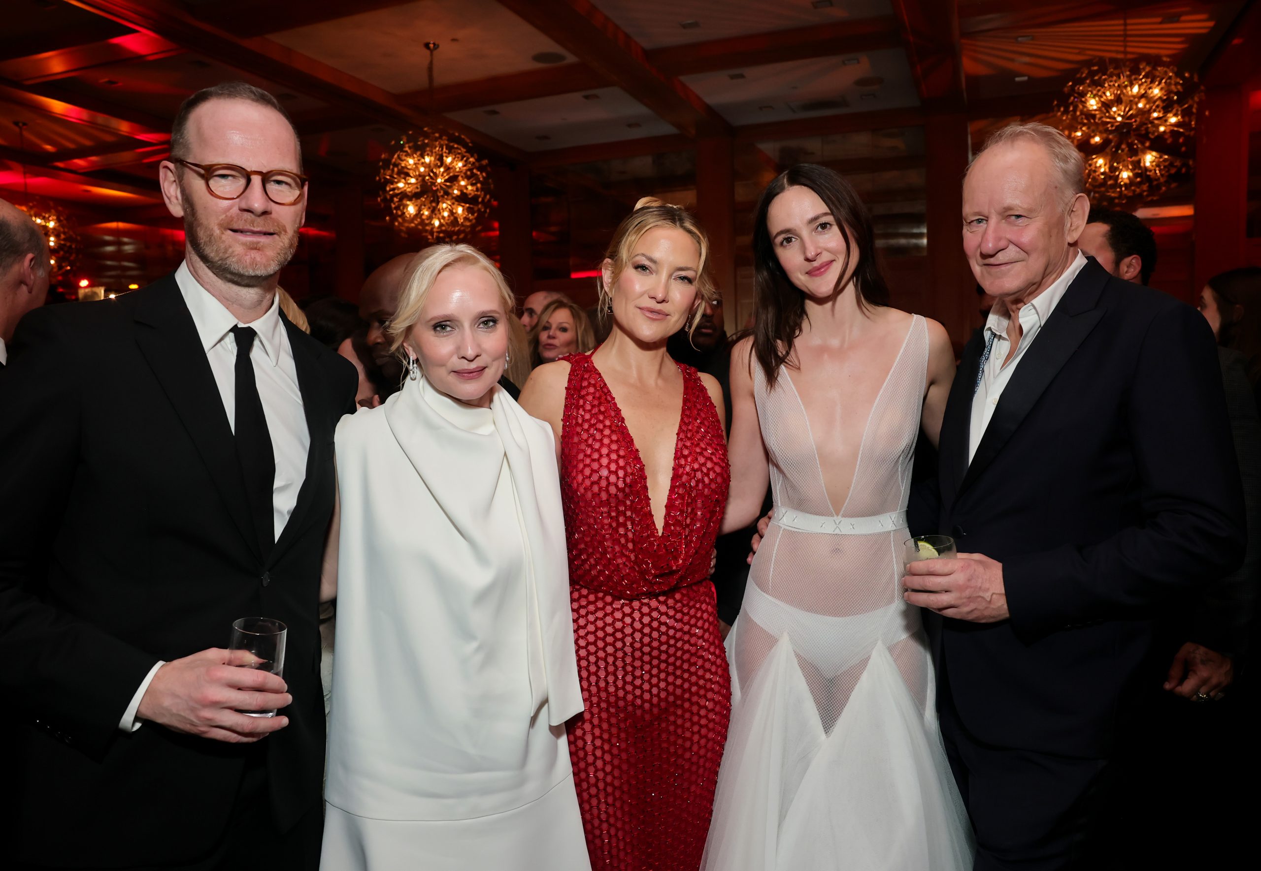 Joachim Trier, Mona Fastvold, Hudson, Reinsve, and Skarsgård.