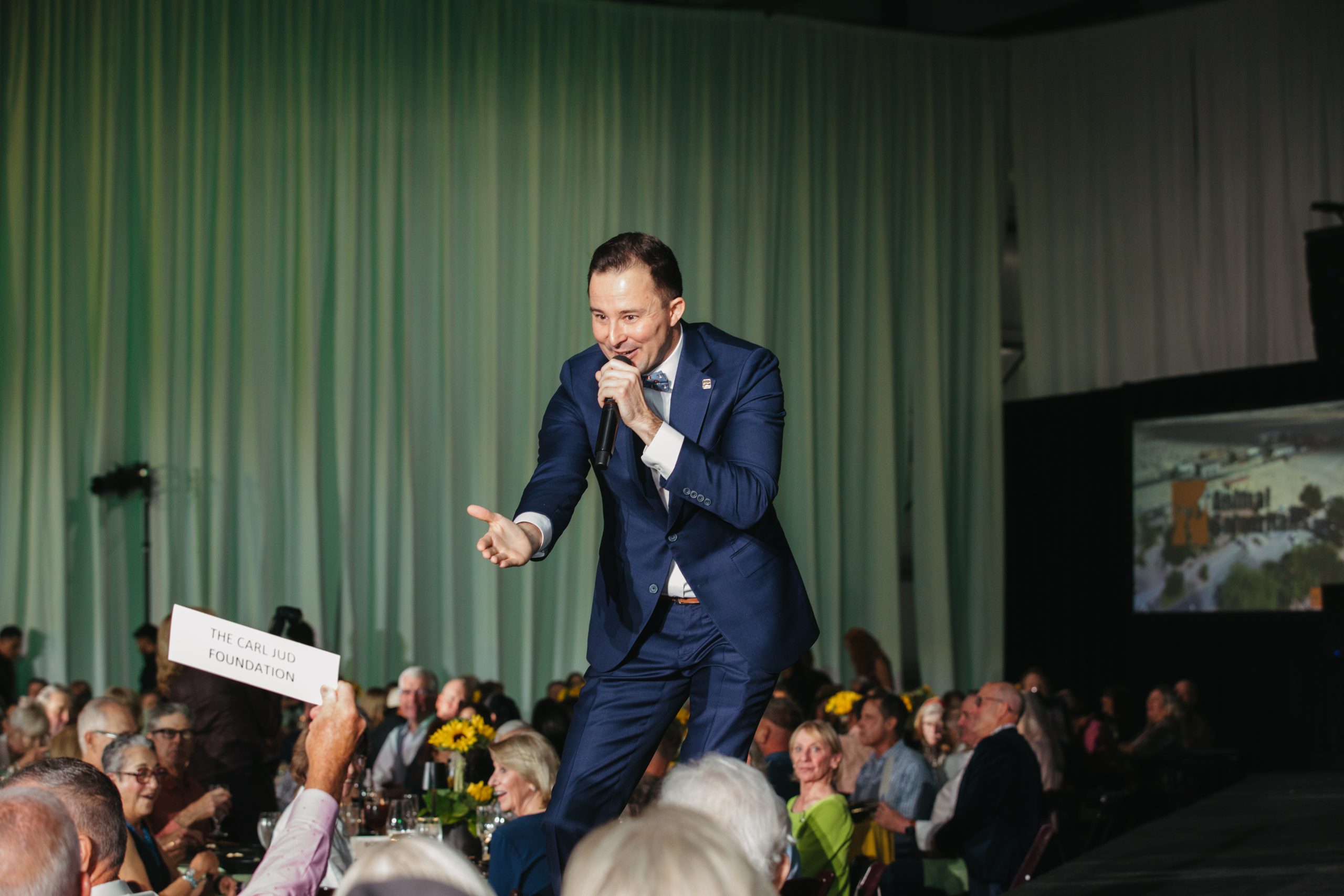 Beyond the runway, guests explored an impressive silent auction where items included rounds of golf on the desert’s most desirable courses, and a dazzling pair of diamond and ruby hoop earrings from Brandon Boswell Diamonds. Bidding was lively and competitive, reflecting the generosity that has long defined Men of the Desert.