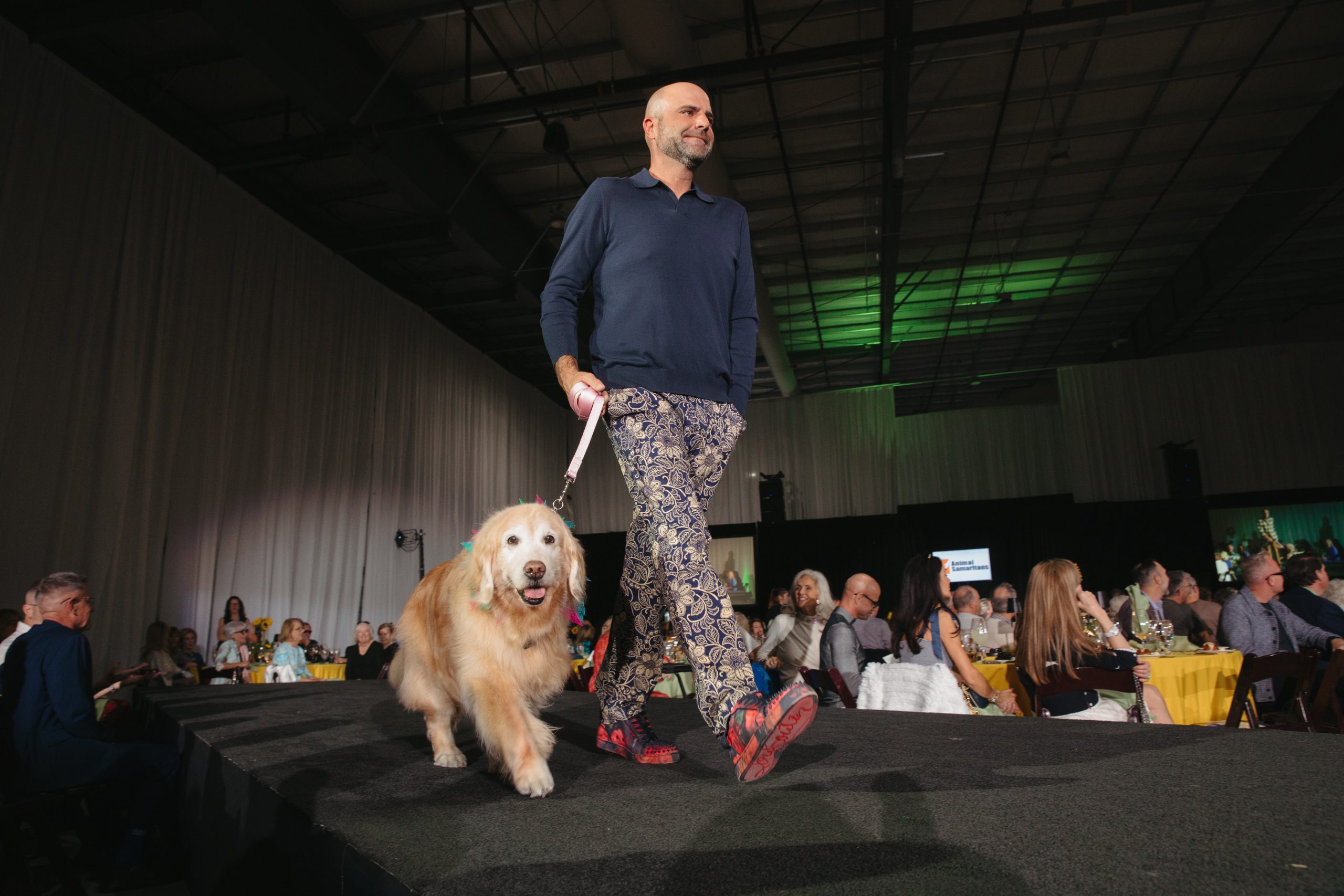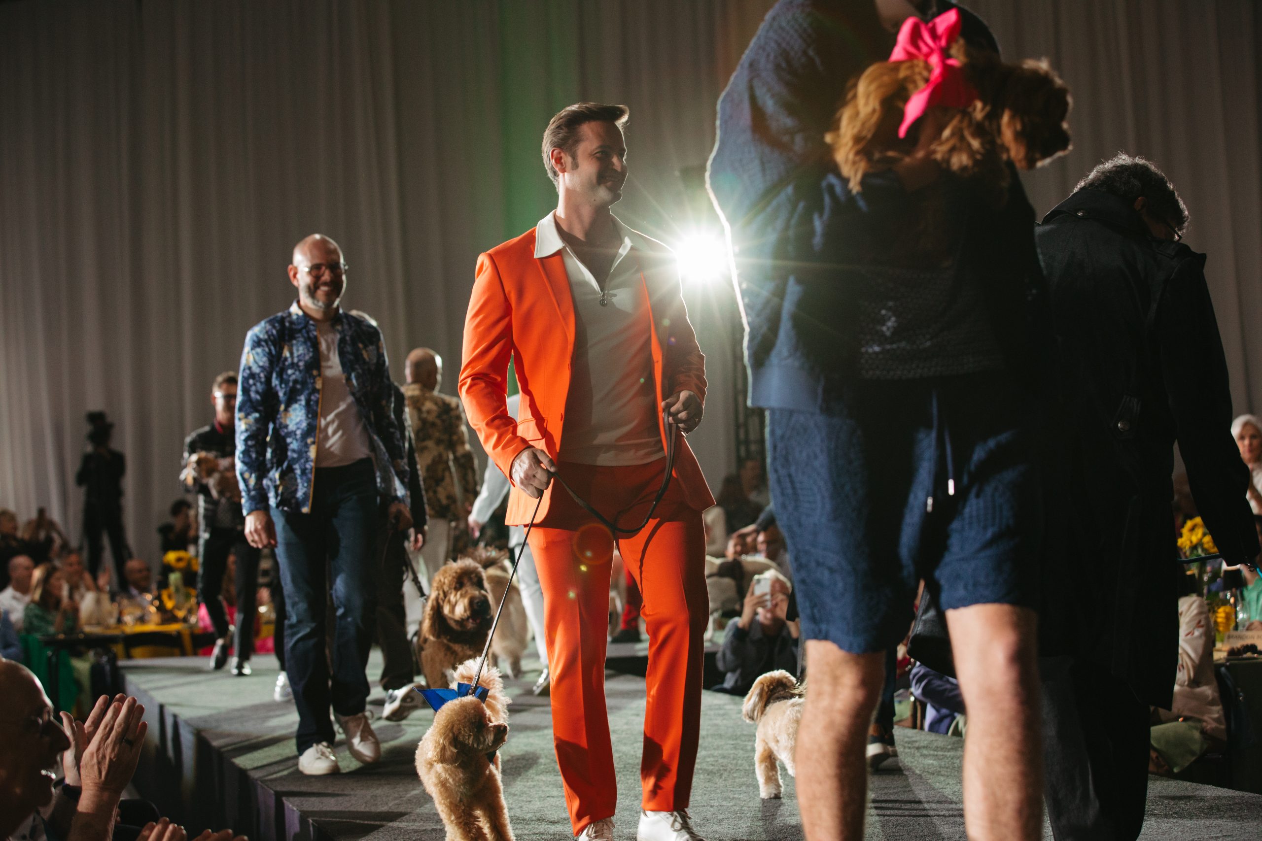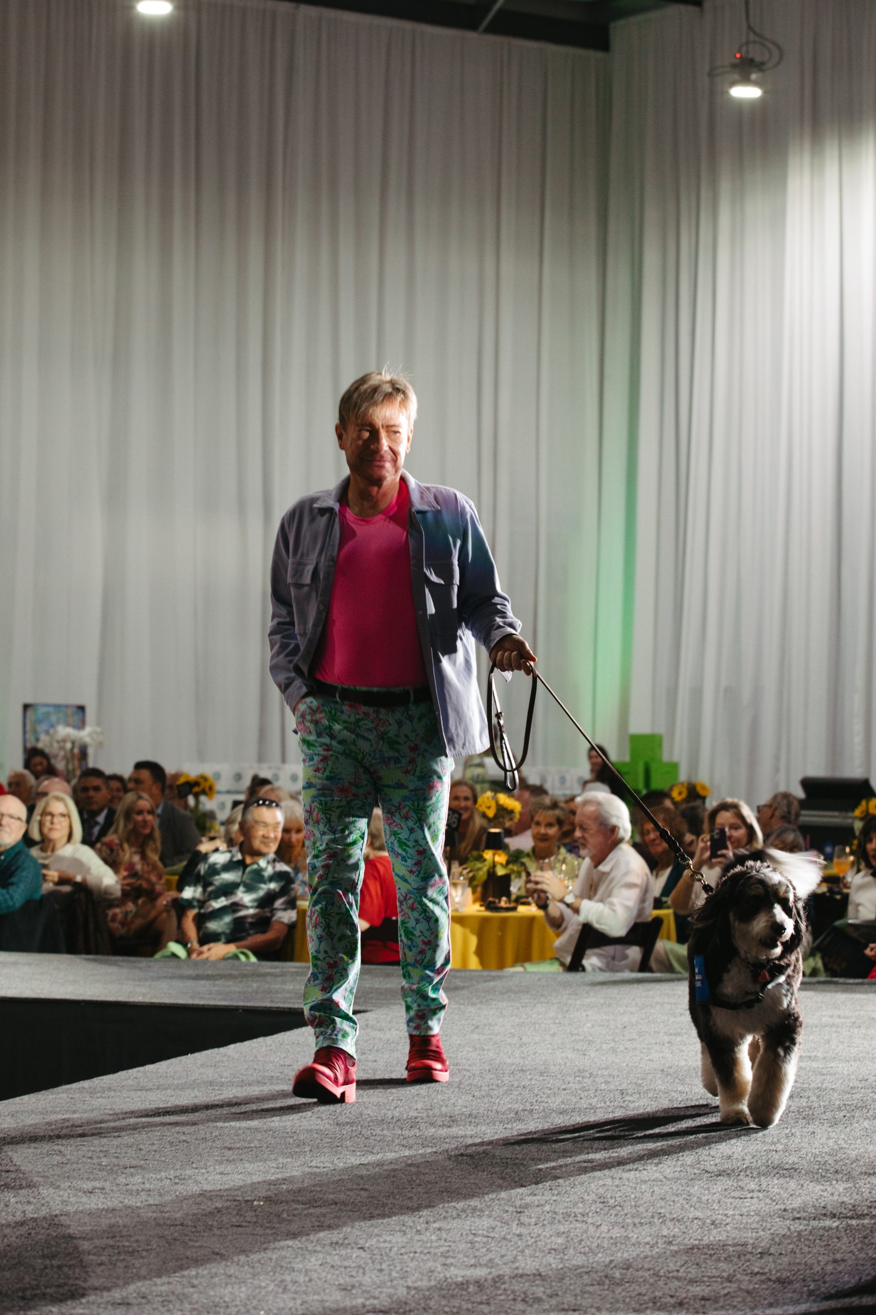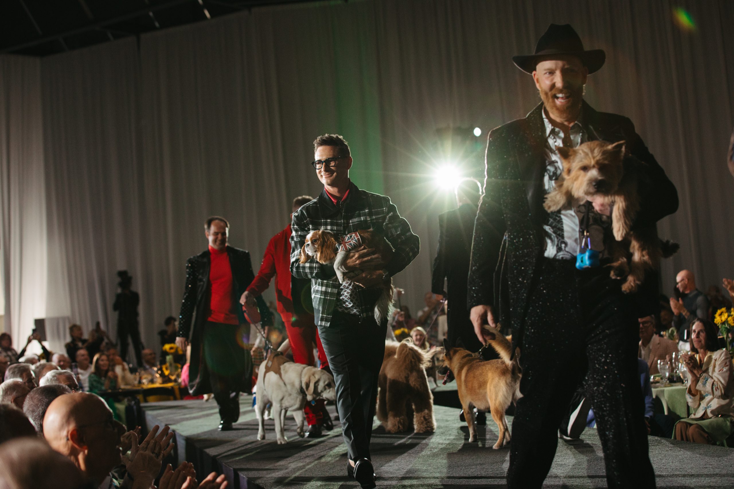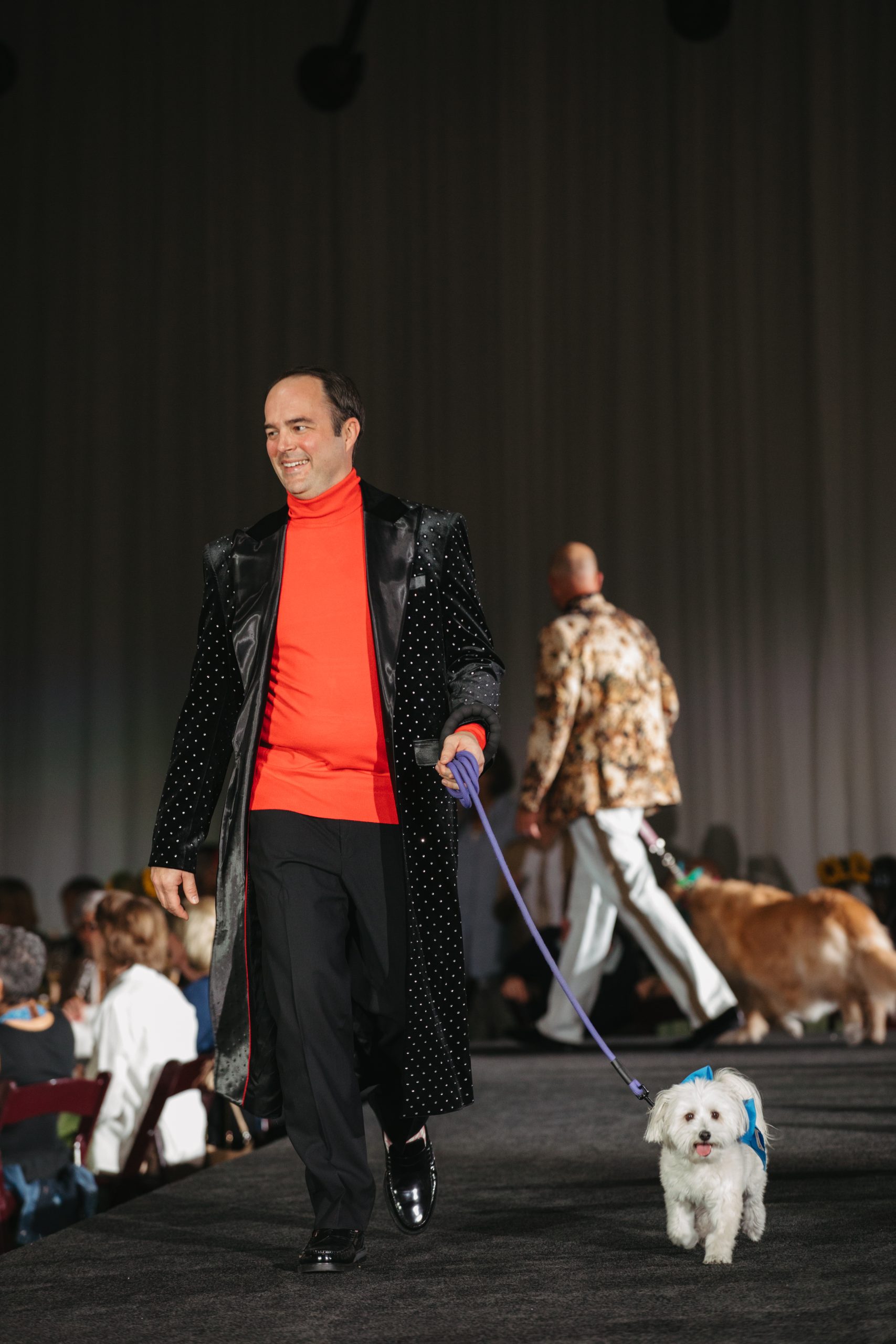 The runway came alive as Men of the Desert models stepped out in a dynamic showcase of contemporary and classic menswear. Each model was joined by a canine companion, whether a longtime pet, therapy partner, or other furry friend. Their wagging tails, spontaneous pauses, and playful personalities brought a lighthearted contrast to the polished looks, prompting laughter, applause, and countless photo-worthy moments.